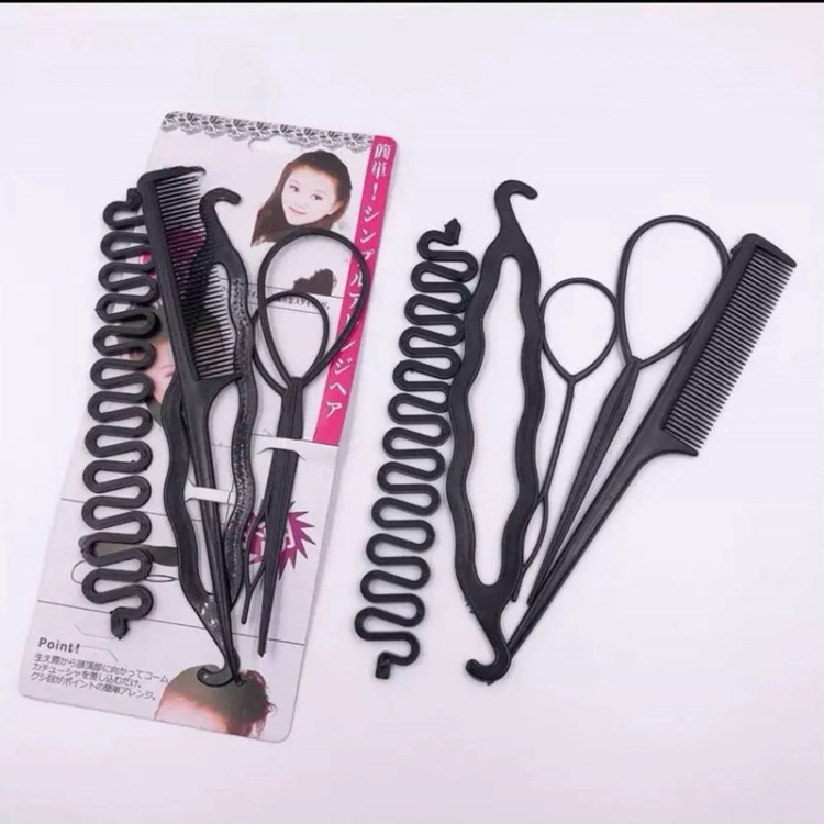 بسته ابزار مو 5 تکه یک شانه، بامتل، ابزار گیس،... بسیار کاربردی بسیار به صرفه بی نیازی از آرایشگاه برای کبابی کردن مو قیمت بسیار عالی شنیون سه سوته مو