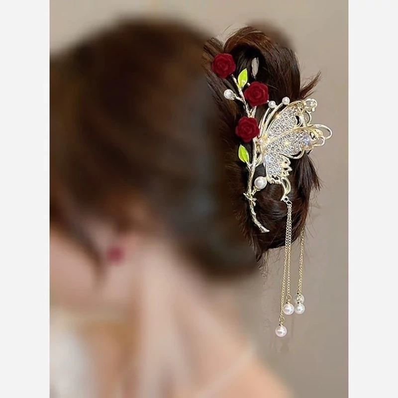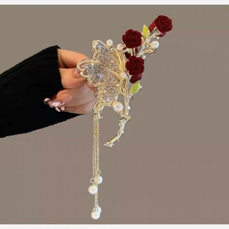 📌کلیپس مجلسی 📌مدل شکوفه 📌شکوفه قرمز و نگین کار شده 📌اویزدار 📌جنس فلزی 📌حدودا 12cm